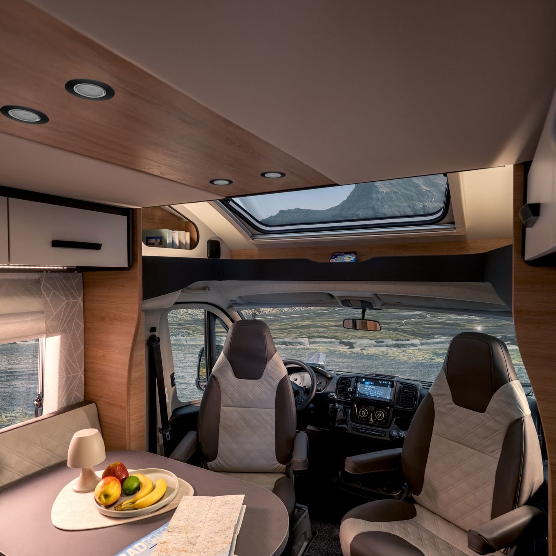 Hochwertige Passform-Sitzbezüge für Fahrerhaussitze im KNAUS Wohnwelt-Design |