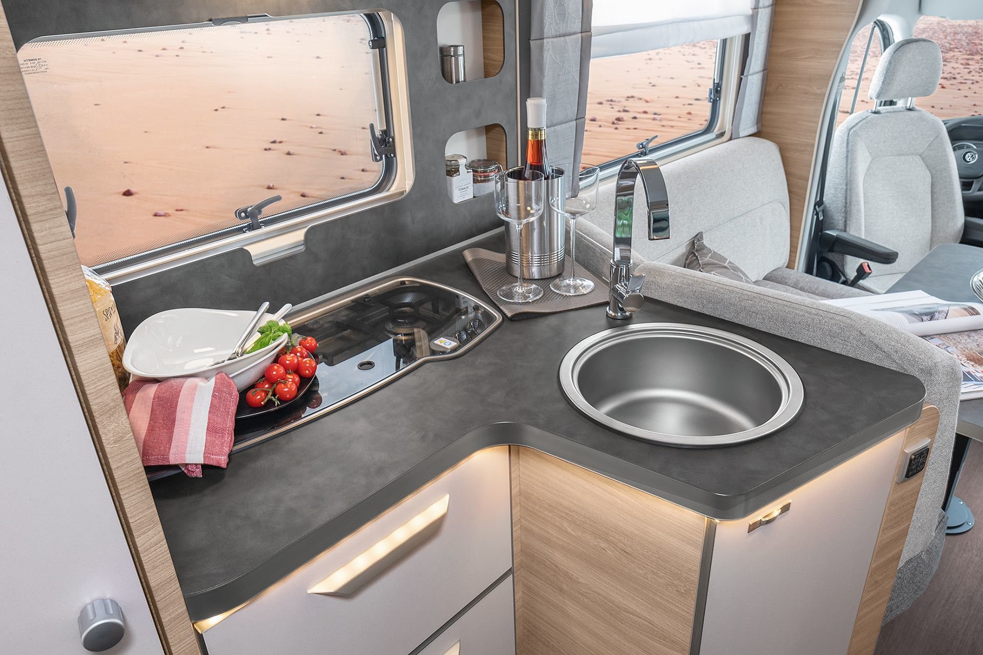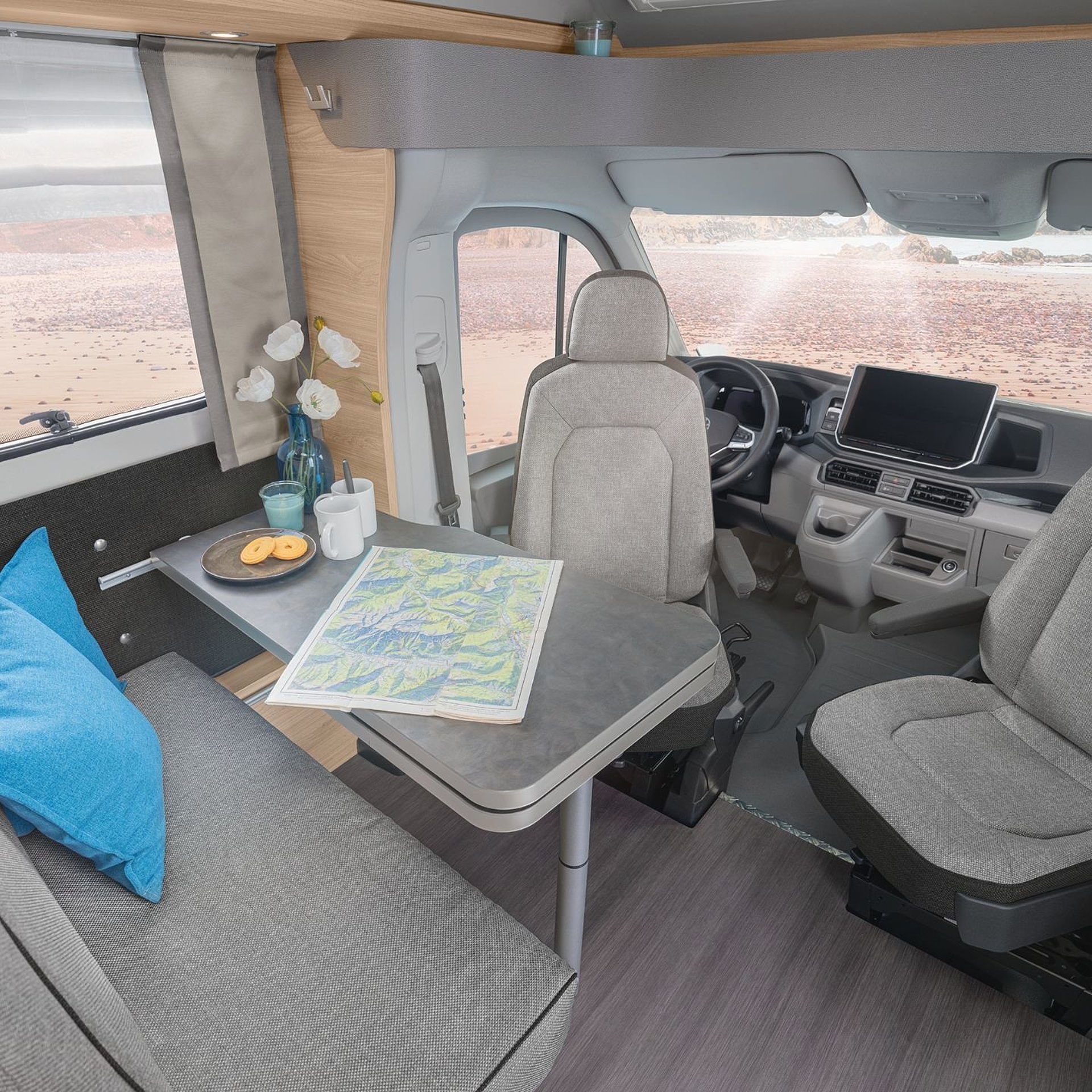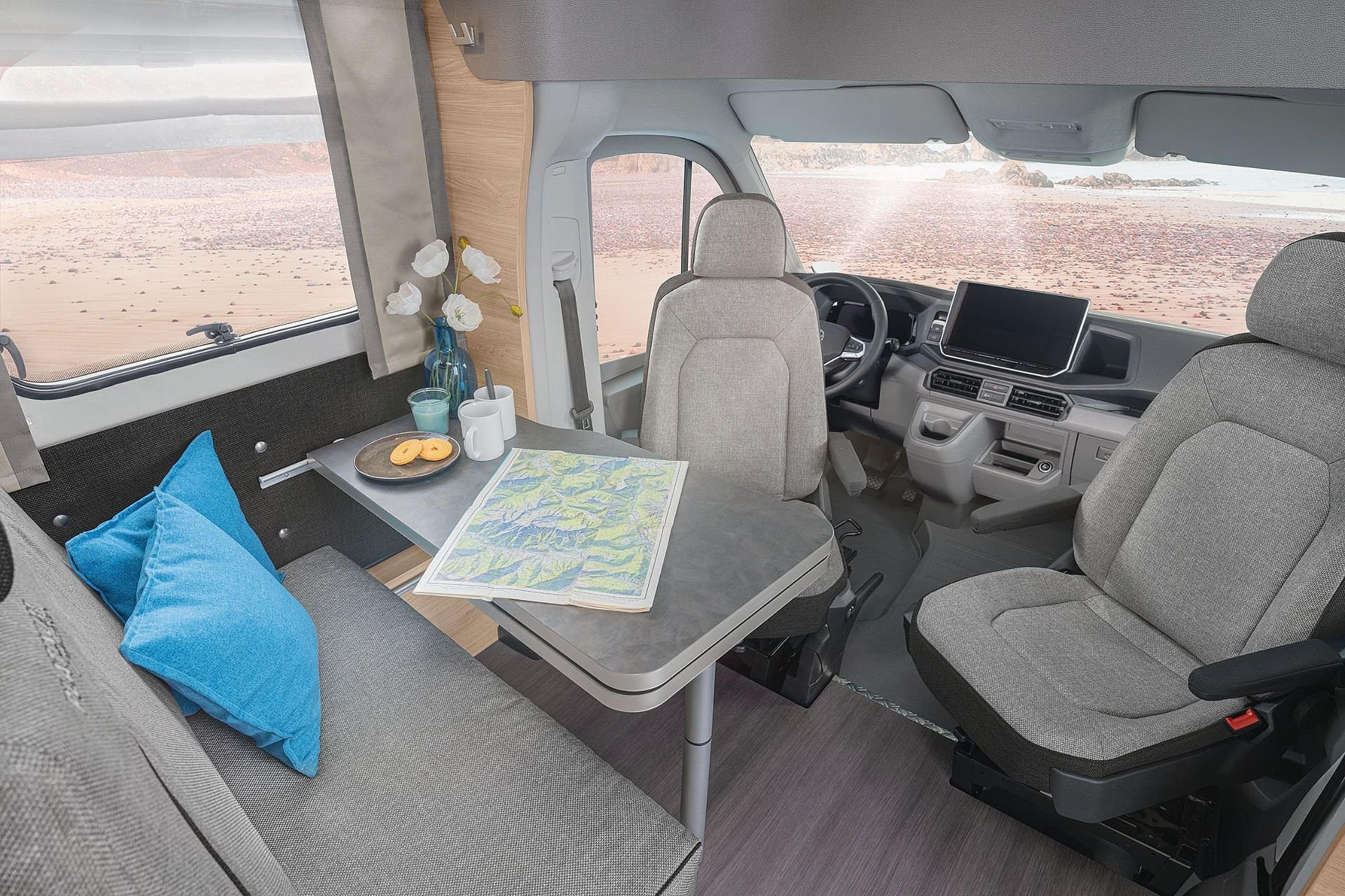 Hochwertige Passform-Sitzbezüge für Fahrerhaussitze im KNAUS Wohnwelt-Design |