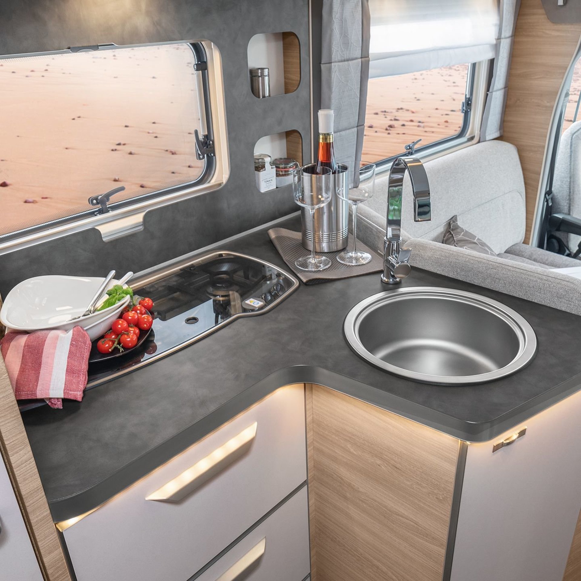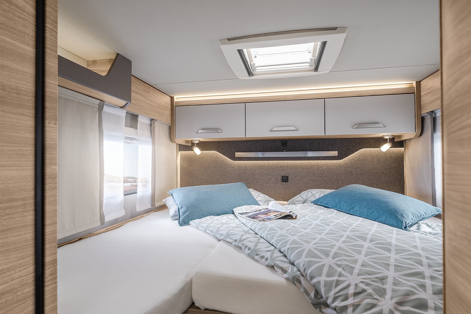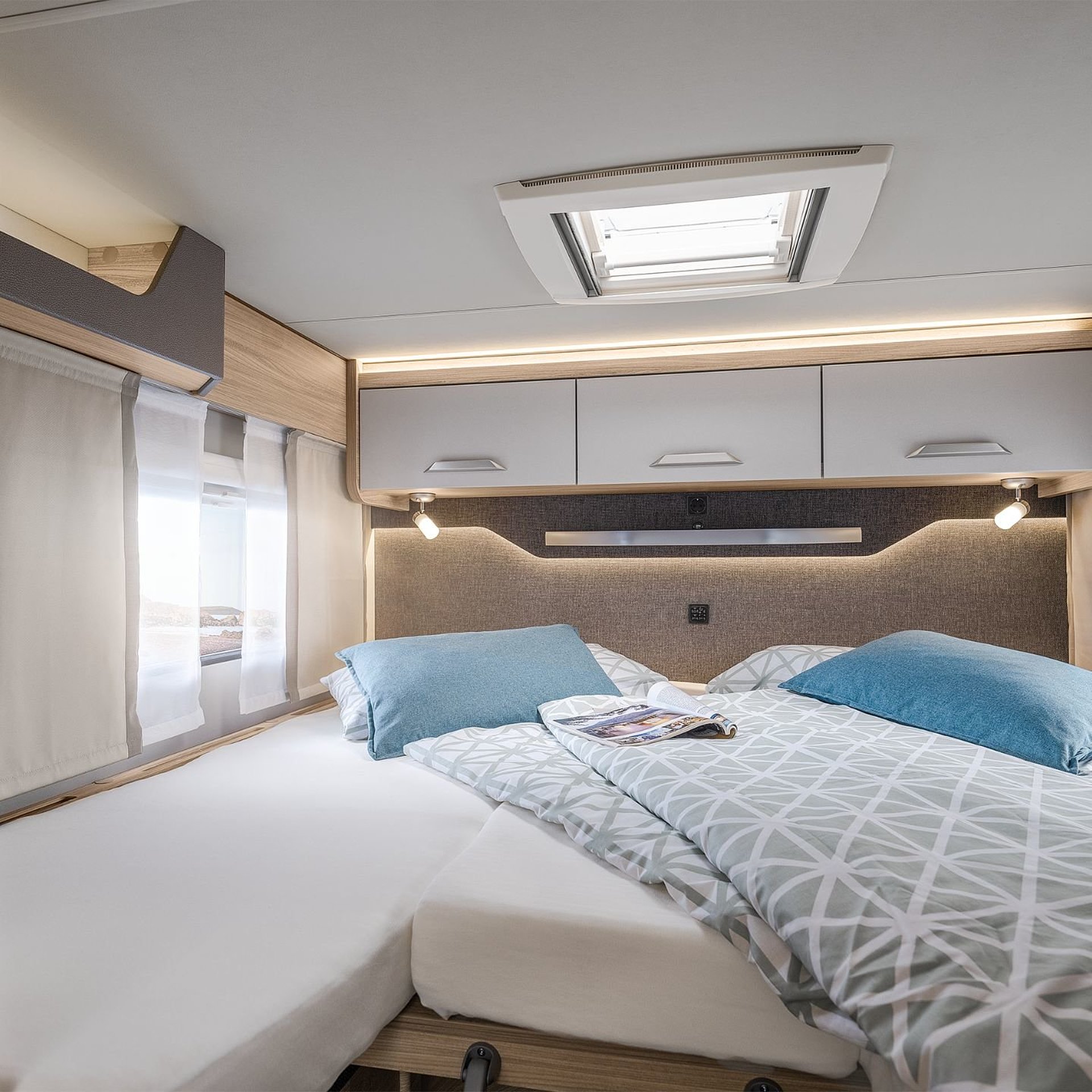 Hochwertige Passform-Sitzbezüge für Fahrerhaussitze im KNAUS Wohnwelt-Design |